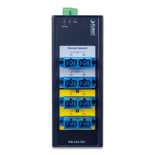 Серия PLANET IFB‑244 - это промышленные оптические bypass‑переключатели, предназначенные для защиты критически важных волоконно‑оптических линий связи от отказов оборудования и перебоев питания. Устройства обеспечивают автоматическое переключение трафика в bypass‑режим при потере питания или отказе локального коммутатора, сохраняя непрерывность связи между удалёнными сетевыми узлами.