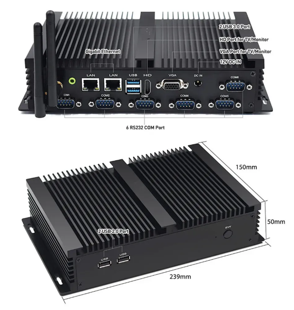 VENOEN (Hystou) K4 - компактный промышленный компьютер без вентиляторов, оснащённый двумя LAN‑портами, слотом для SIM‑карты, интерфейсами RS485/COM и LVDS. Подходит для автоматизации, промышленного оборудования, цифровых киосков, систем видеонаблюдения и встраиваемых решений.