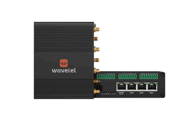 WR565 - высокопроизводительный промышленный маршрутизатор, обеспечивающий подключение по стандарту сотовой связи LTE‑A Cat 6 со скоростью до 300 Мбит/с. Устройство оснащено четырьмя гигабитными Ethernet‑портами, поддержкой Wi‑Fi 6, интерфейсами RS232 и RS485, а также расширенным набором дискретных и аналоговых входов/выходов.