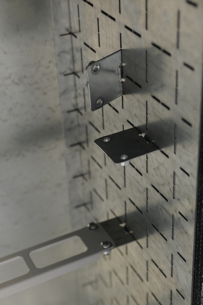 Шкаф крепится на стену при помощи 4-х уголков (анкеры не входят в комплект поставки), при необходимости можно применить крепление на столб (не входит в комплект поставки).